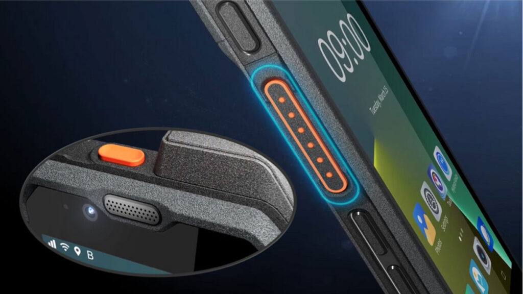 Unlike consumer smartphones that rely entirely on touchscreens, the PNC460 includes a dedicated physical Push-to-Talk button. Consequently, users can operate it much like a traditional two-way radio.